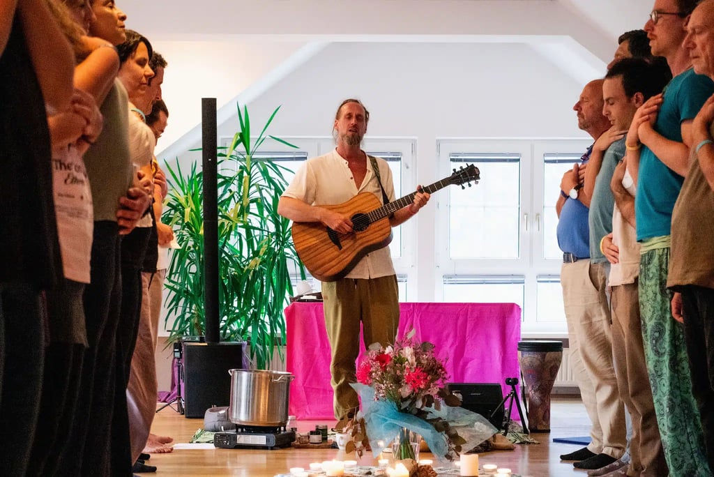 In meinen Workshops versuche ich einen Raum zu öffnen, der alle Teilnehmenden dazu einladen möchte, sich ganz authentisch und echt zu zeigen; immer in dem Ausmaß, dass sich für den jeweiligen Menschen im Moment stimmig anfühlt. In den Workshops wird in unterschiedlichsten Themenfeldern gearbeitet - z.B. hast du in meinem Mantra-Workshop die Möglichkeit, deine Stimme zu entdecken, zu erfahren, wie es sich anfühlt selbst Raum zu halten und lernen, wie du Mantras selbst begleiten und anleiten kannst. In der Kuchenmantrazeremonie geht es um Schattenarbeit. Hier hast du die Möglichkeit zu erfahren, wie du Anteile von dir durch Musik und in Beziehung mit anderen wohlwollend integrieren kannst. Als Yogalehrer biete ich Workshops für tiefe Selbsterfahrung durch Körper- Entspannungs und Atemübungen.