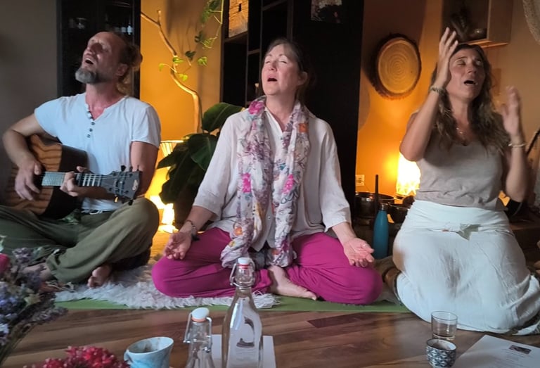 Ich teile Lieder aus unterschiedlichen Kulturkreisen – meist mit sehr einfachen kurzen Texten, die sich immer wieder wiederholen (Mantras); teilweise auch Lieder ohne Text, nur mit Lauten. Du hast die Möglichkeit, die unterschiedlichen Qualitäten der Lieder, wie Hingabe, Lebensfreude, Loslassen usw. in dir wirken zu lassen und darfst dich deinem inneren Prozess hingeben – unterstützt und getragen von der Energie der Gruppe.
